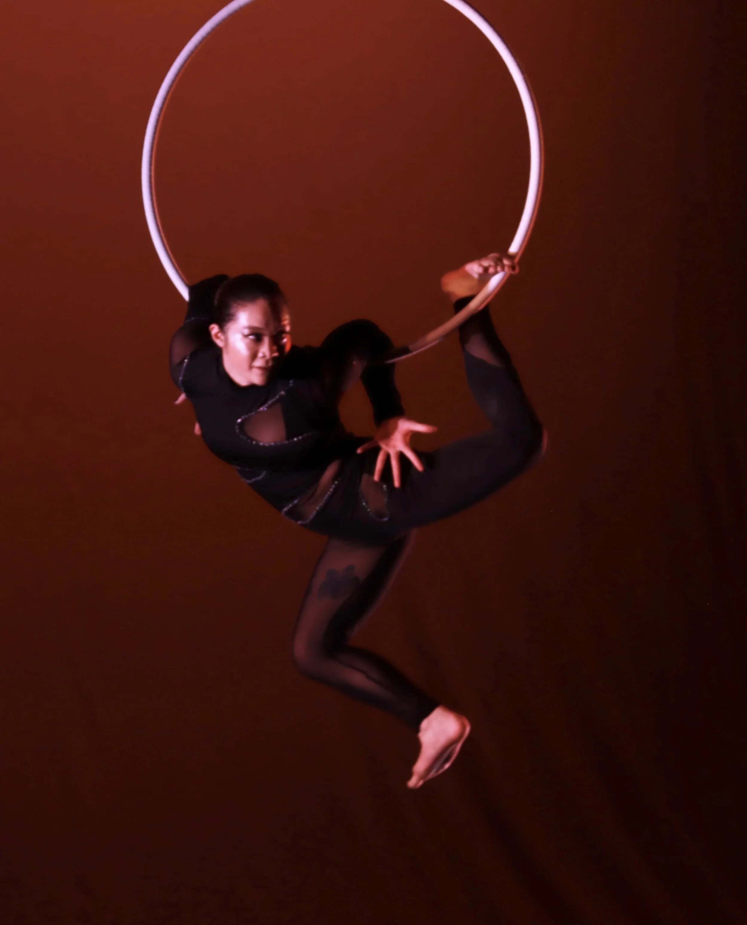 Yuina discovered and fell in love with the circus arts in San Francisco, CA where she developed her particular fondness for aerial straps. After watching a beautiful duo aerial straps act by Cirque du Soleil, she was determined to become such an aerialist. Utilizing her gymnastics background, she trained intensively on aerial straps in San Francisco. Learning to work with the beauty and grace of the aerial straps, she is excited to share her love and knowledge to the aspiring aerial straps artists. Although straps remain her first love, she has expanded her love for circus to other disciplines, including lyra, hand balancing, acrobatics, and duo straps and trapeze.