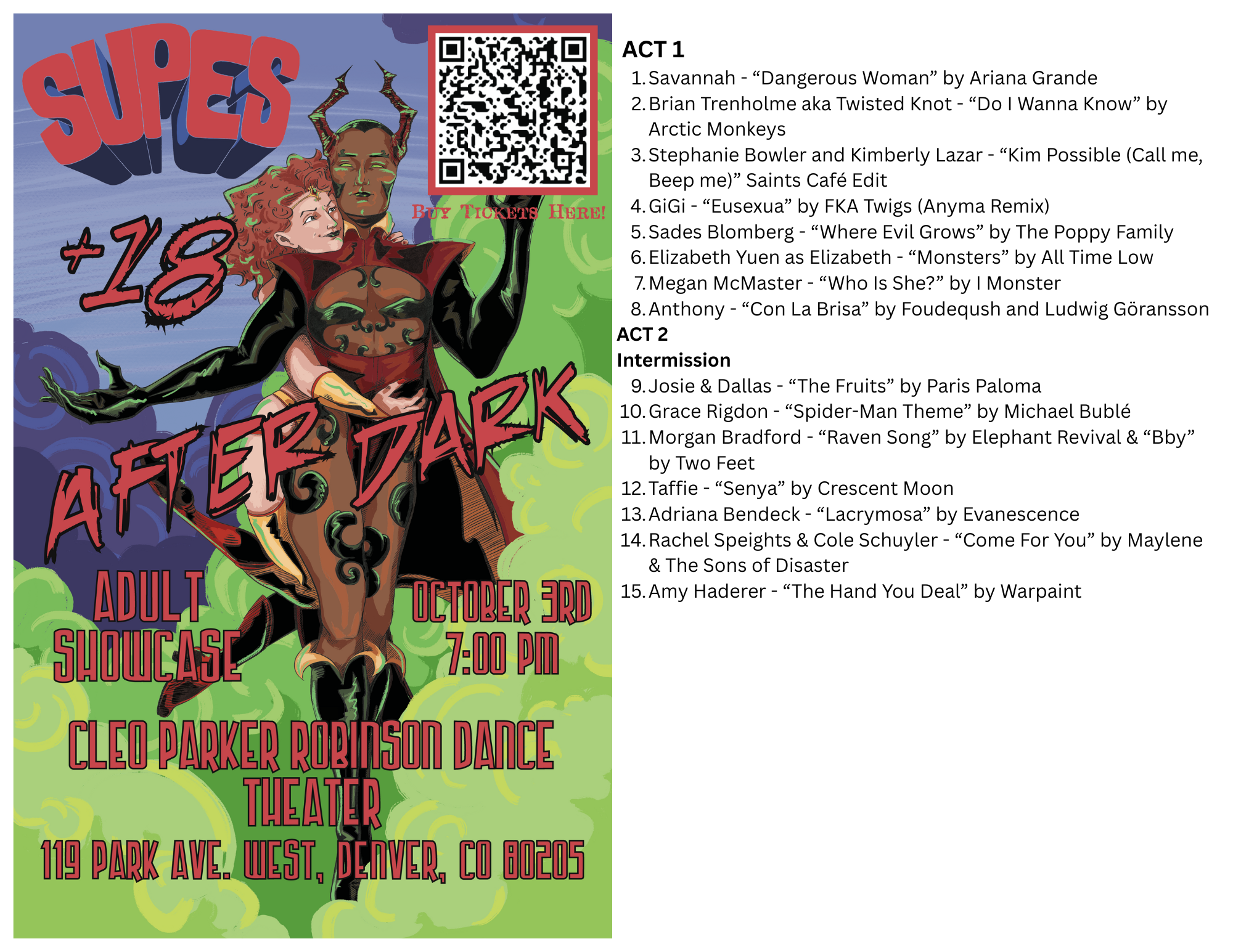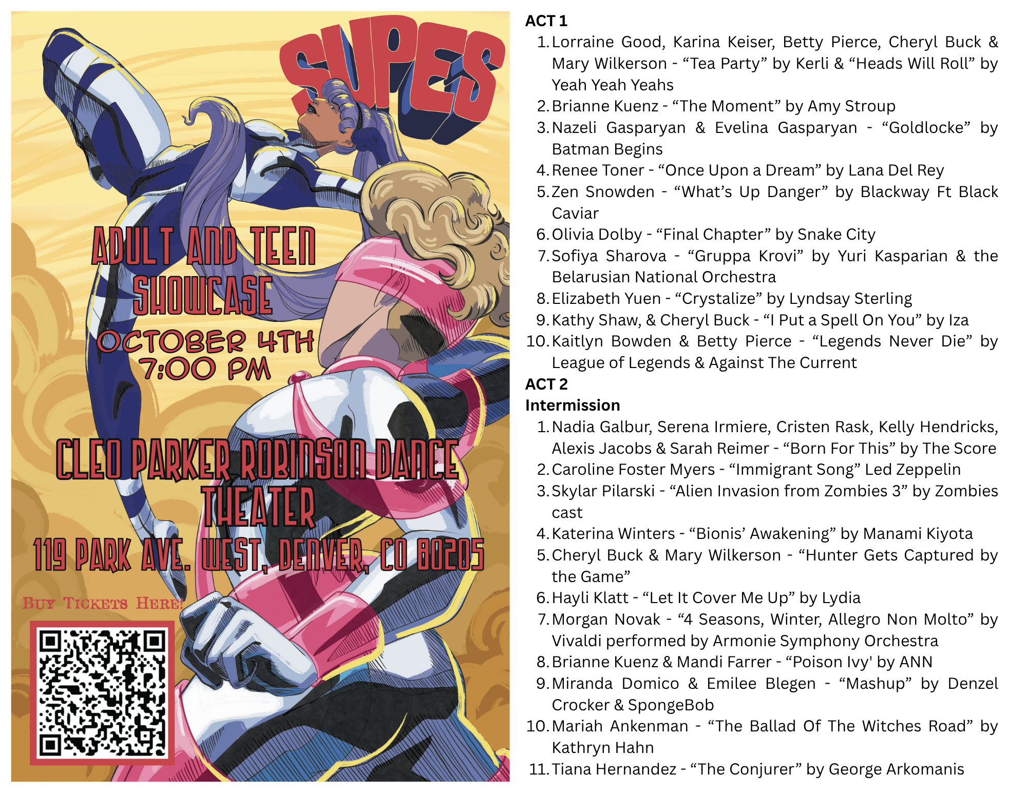 -Wednesday (evening) April 2nd - Full Show Dress Rehearsal (at Cleo Parker Robinson Dance Theater)